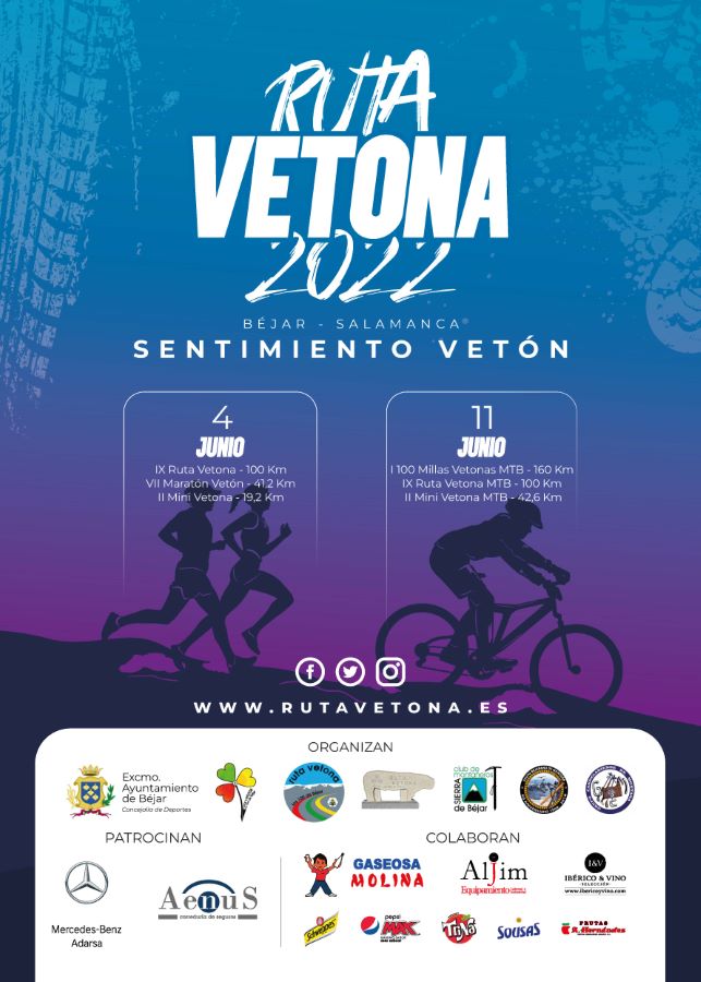 La más destacada es la separación en dos fechas diferentes de las carreras de MTB y las de trail running. Así, los días 4 y 5 de junio de 2022 se celebrarán las habituales pruebas a pie: Ultrafondo (100 kilómetros), el Marathon Veton (42 kilómetros) y la Mini Vetona (modalidad que estrenará un nuevo recorrido de 19 kilómetros). Y para el 11 de junio quedarán las modalidades de bicicleta de montaña con la Vetona BTT (100 kilómetros), la Mini Vetona (31 kilómetros) y la gran novedad en el programa de esta temporada, las ‘100 Millas Vetonas’.