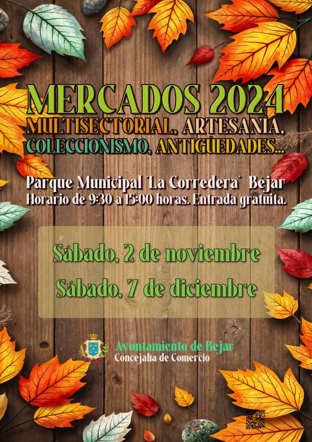 El Parque Municipal de "La Corredera" en Béjar acoge el próximo 2 de noviembre en horario de 9:30 a 15:00h una nueva edición del Mercado Multisectorial, artesanía, coleccionismo, antiguedades, ...