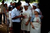 Los concursantes y los miembros de la organización, así como los encargados de guisar el calderillo gigante, comenzaron a llenar el merendero de El Castañar para participar en la fiesta, al lado de la plaza de toros, que es precisamente donde se "recluye" el jurado para deliberar sobre los 30 platos del típico guiso.