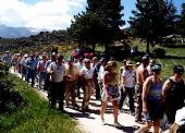 La romería de la Peña de la Cruz superó el récord de participación, al menos en lo que a romeros a pie se refiere. Un total de 450 caminantes llegaron a la Cruz del Peladillo, punto intermedio de la romería, en el que el abad ofrece un tentempié a los participantes de la caminata. La cifra supone un incremento de 100 participantes respecto al año pasado.