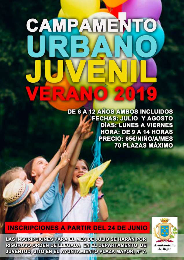 El Ayuntamiento de Béjar abre el lunes, 24 de junio, el plazo de inscripción en los campamentos urbanos municipales infantil y juvenil de verano