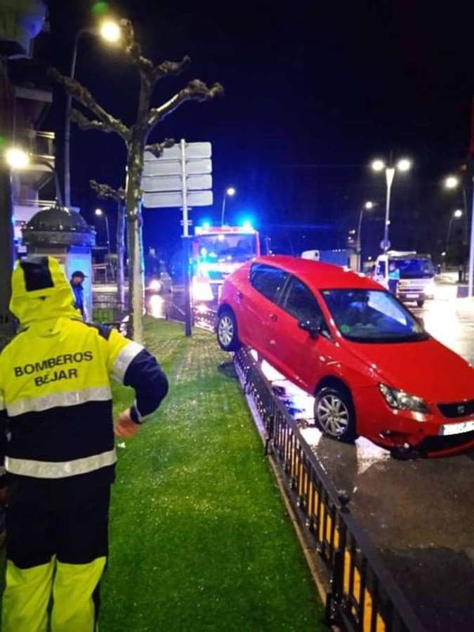 El vehículo ha quedado subido a la barandilla del jardín situado en La Corredera de Béjar