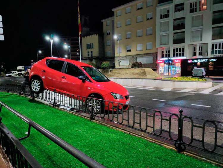 Según fuentes consultadas, el conductor habría perdido el control del vehículo, impactando y quedando las dos ruedas traseras subidas sobre la barandilla que delimita la zona verde.