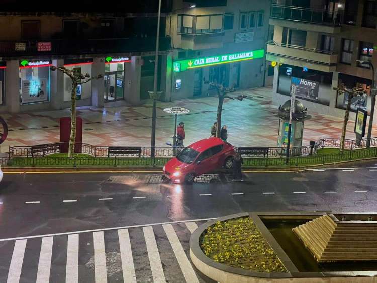 En torno a las diez de la noche un vehículo ha impactado contra el jardín de la Plaza de España en Béjar.