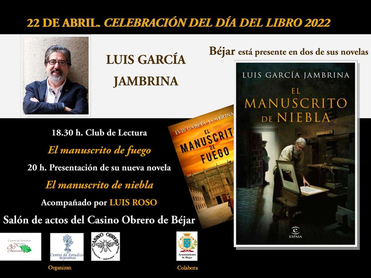A las 18.30 tendrá lugar el tradicional Club de Lectura que todos los meses organiza el Casino Obrero de Béjar. Esta vez tendrá como centro la novela "El manuscrito de fuego" (Espasa), escrita por el propio García Jambrina en 2018. Su interés radica en que el personaje principal, al margen del pesquisidor Fernando de Rojas, es el bejarano don Francés de Zúñiga, escritor y bufón de los duques de Béjar y del emperador Carlos V. Además parte de la acción transcurre en nuestra villa. En este Club de Lectura los lectores podrán hacer preguntas sobre la trama, personajes y otros elementos literarios de la novela directamente a su autor.