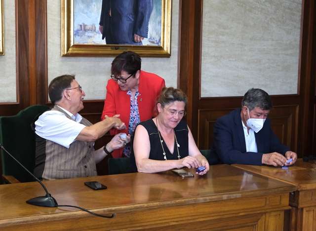 El acto se cerró con una sorpresa: la imposición de insignias del Centro de Estudios Bejaranos -consistente en el logotipo clásico del roble con la filacteria en la que se puede leer A vetustate robur («cual roble viejo y fuerte» o «la fortaleza desde la experiencia») en plata-, al primer presidente del CEB, Manuel Antonio Marcos Casquero, y a los alcaldes presentes en el acto, Antonio Cámara López, Alejo Riñones Rico, Cipriano González Hernández y Mª Elena Martín Vázquez, por su apoyo a la institución cultural bejarana durante los años de su alcaldía. Con este pequeño broche final, se cerró el acto institucional del Centro de Estudios Bejaranos.