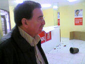Elecciones 2007 / La sede del candidato del PSOE, ha amanecido con un escaparate roto tras haber sufrido un acto vandálico, presumiblemente la pasada noche. A simple vista se aprecia que no ha sido el robo el motivo del acto vandálico. El estado en el que han quedado los restos de cristales no habría permitido la salida de un hipotético ladrón. En fase de preparación, la nueva sede tampoco contaba con elementos de valor que hubieran podido ser sustraídos.