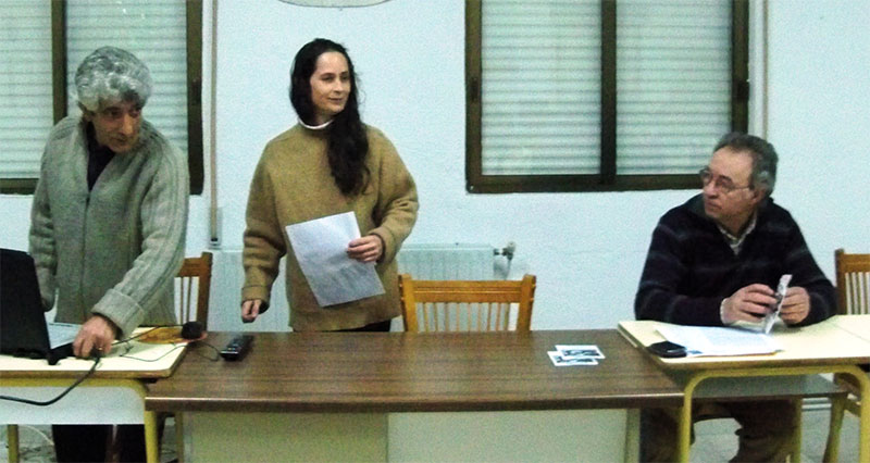 Acompañando en la mesa a Antonio estaban Gilberto Soria y Elvira Lichte, pareja de nuevos pobladores instalados recientemente en el pueblo, creadores y dinamizadores del Ágora. Gilberto explicó cómo nace esta idea y la importancia de un espacio de libertad en una plaza madura. Agradece la acogida amable y solidaria de los vecinos que siente que le ha ayudado en su recuperación después de un ictus que sufrió hace cerca de 4 años.