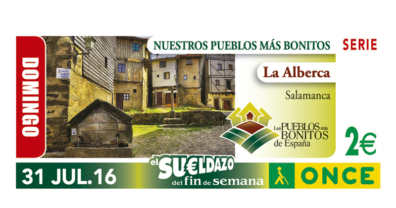 La Alberca protagonizan los cupones de la ONCE del día 31 de julio, dentro de la serie ‘Nuestros pueblos más bonitos’. Cinco millones y medio de cupones, mostrarán por toda España, la belleza de la localidad serrana.