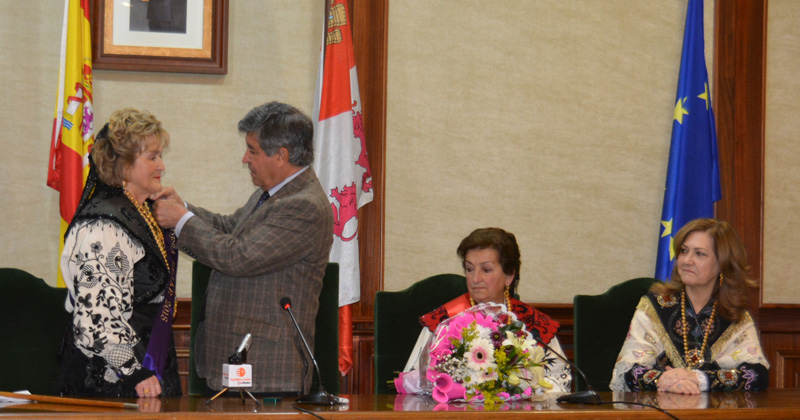 El alcalde de Béjar, Alejo Riñones, recibió a las aguedas en el Ayuntamiento de Béjar. La aguedesa Mª Isabel Castaño Barriga tomó el bastón de mando y recibió el distintivo con la abeja de la ciudad.