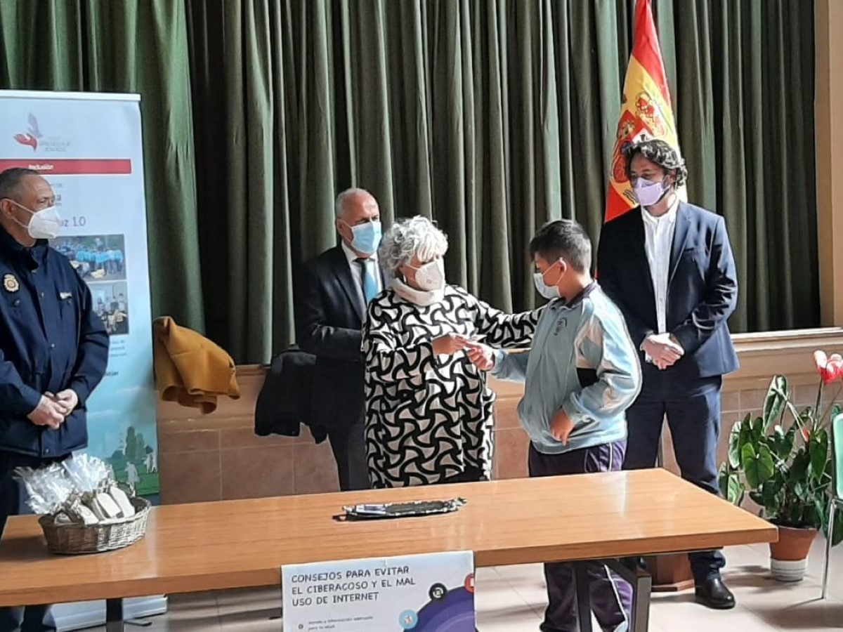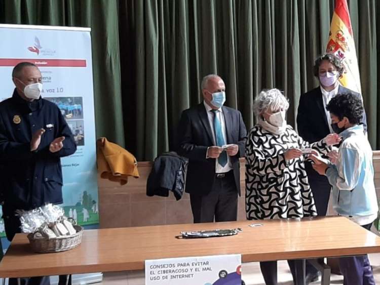 La subdelegada del gobierno, María Encarnación Pérez Álvarez, acompañada del alcalde de Béjar y miembros de la Policía Nacional, han sido los encargados de entregar a los escolares el carné por su participación en este programa dirigido que busca, mediante charlas de formación que imparte la Policía, formar a los alumnos para que aprendan recursos tecnológicos con el fin de evitar problemas como el ciberacoso, grooming, sexting, tecnoadicciones o suplantación de identidad.