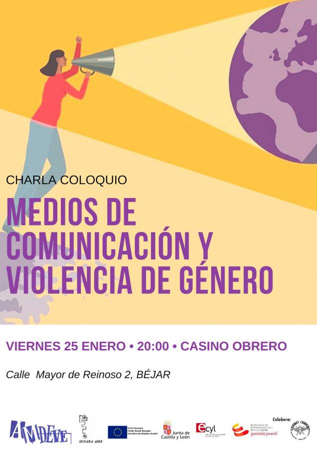 El próximo viernes día 25 de enero de 2019 a las 20:00 horas tendrá lugar en la sala de exposiciones y conferencias del ateneo cultural Casino Obrero de Béjar una conferencia organizada por AMDEVE bajo el título "Medios de comunicación y violencia de género”.