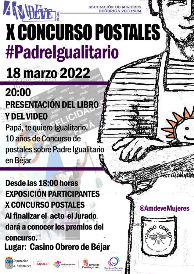 La jornada dará comienzo a las 18:00 horas con la exposición de las postales presentadas al concurso, posteriormente tendrá lugar la presentación del libro y del vídeo "papá te quiero igualitario. 10 años del concurso de postales sobre padre igualitario en Béjar". Será a partir de las 20h.