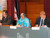 Y por parte saharaui, la Secretaría General de la Unión Nacional de Mujeres Saharauis Fatma El Mehdi (en la foto), el representante para europa Mohamed Sidati, el de España Brahím Gali, la Ministra de Educación Marian Salek, etc...