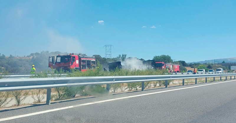 El incendio del camión, que transitaba en dirección a Salamanca, se produjo en la tarde del martes, por causas que se desconocen, aunque todo parece indicar que se debiera a las altas temperaturas o un fallo mecánico.