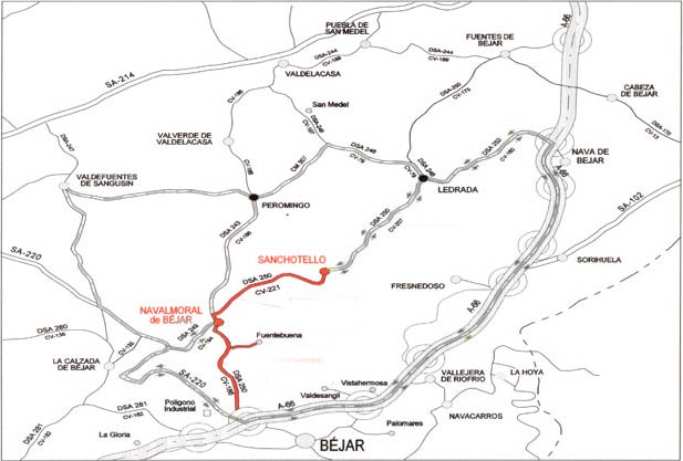Vías estrechas y con pavimento deficiente, rampas, curvas peligrosas, tramos que se inundan y otros en los que las ramas impiden a los vehículos grandes circular por su carril o restos de muros, son algunos de los obstáculos a los que se enfrentan los numerosos usuarios de la carretera DSA-250 (tramo desde la DSA-220 hasta la pedanía de Fuentebuena y su unión con los pueblos de Navalmoral de Béjar y Sanchotello) y la DSA-256.