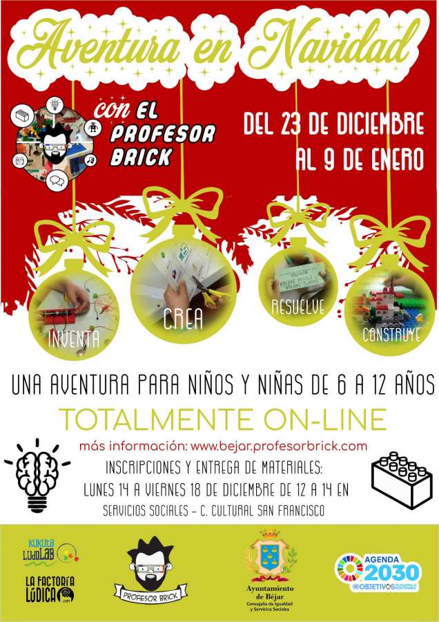 La Aventura en Navidad con el profesor Brick es una propuesta de actividades no presenciales dirigido a niñas y niños entre 6 y 12 años, que se desarrollará ente los días 19 de diciembre y 7 de enero.
