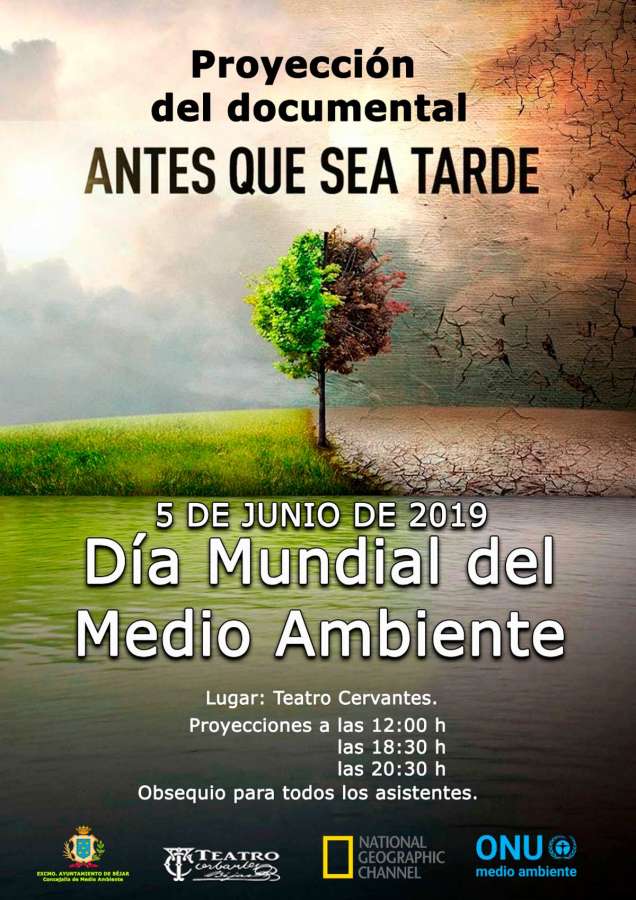 Hoy miércoles, 5 de junio, es el Día Mundial del Medio Ambiente y por ello desde el departamento de Medio Ambiente del Ayuntamiento de Béjar organizan la proyección del documental "Antes que sea tarde".