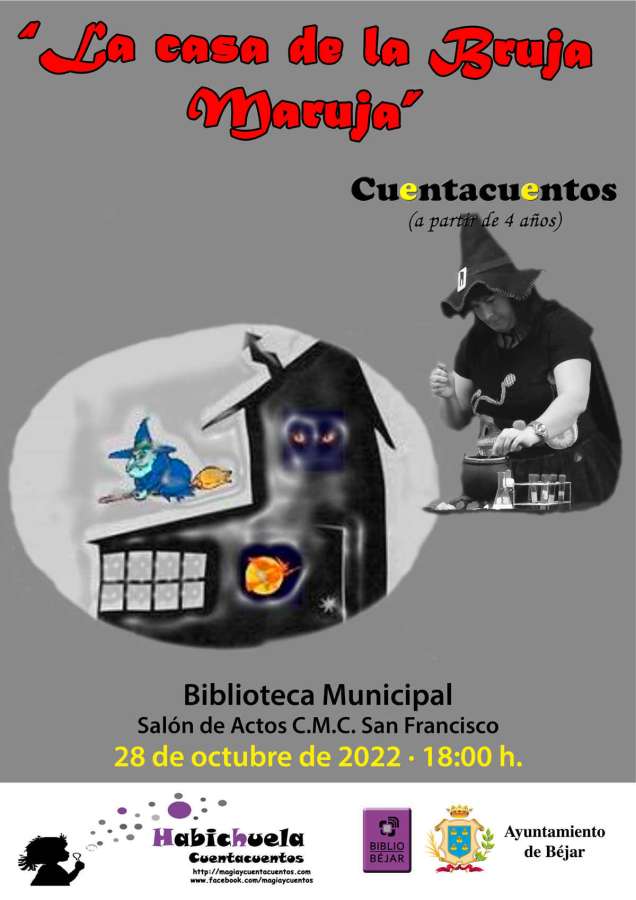 Desde la Biblioteca Municipal, un año más se quiere conmemorar este día y por ello el próximo viernes 28 de octubre empezaremos el curso con un nuevo cuenta cuentos. En esta ocasión Habichuela nos contará “La casa de la bruja Maruja”, será como siempre a las seis de la tarde en el Salón de Actos del Convento de San Francisco.
