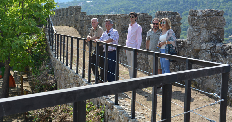 El alcalde de Béjar, Alejo Riñones, junto a varios de los concejales del equipo de gobierno municipal, mostraron la rehabilitación de estos 200 metros de muralla que discurren entre el parque de La Antigua y la Puerta del Pico.