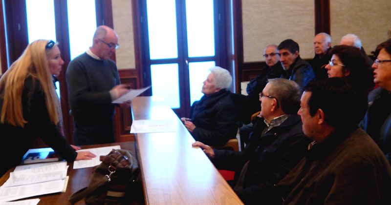 Los concejales de Obras, Alejandro Romero Castelani, y la concejal de Servicios Sociales y Cementerio Municipal, Mª. del Castañar Rodilla, se reunieron con los solicitantes en el Salón de Plenos municipal.