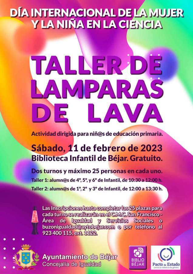 La segunda actividad será el 11 de febrero que se conmemora el Día internacional de la mujer y la niña en la ciencia, por eso, y con el fin de acercar la ciencia a las más pequeñas y pequeños, desde la concejalía se ha programado el taller lámparas de lava.
