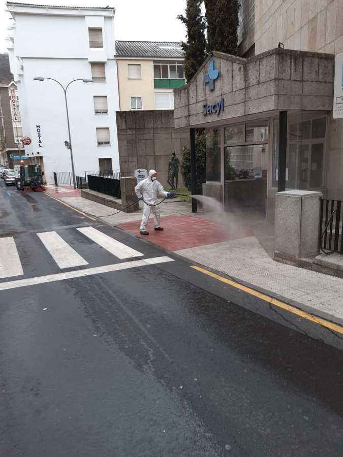 Los operarios llevan a cabo un plan de esterilización en varios puntos de la ciudad y en especial en lugares como los accesos al centro de salud y el hospital, pero también en calles y aquellos lugares cuyos accesos y tránsito así lo exigen. "Estos son lugares donde esta limpieza se está realizando. Pero también en otras zonas, llevando a cabo una desinfección general de la ciudad", destacan desde Medio ambiente.