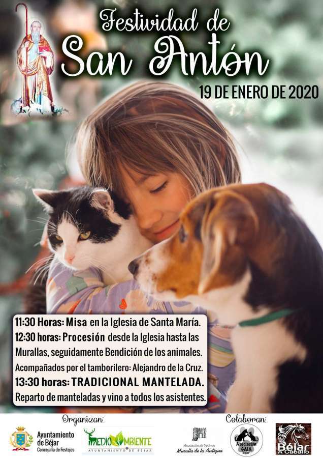 La celebración comenzará a las 11:30 horas con la misa en la Iglesia de Santa María. A las 12:30 horas tendrá lugar la procesión desde la iglesia hasta las murallas, acompañados por el tamborilero Alejandro de la Cruz. Seguidamente, en las murallas, tendrá lugar la bendición de los animales; y para finalizar, a las 13:30 horas tendrá lugar la tradicional mantelada, con el reparto de manteladas y vino a todos los asistentes.