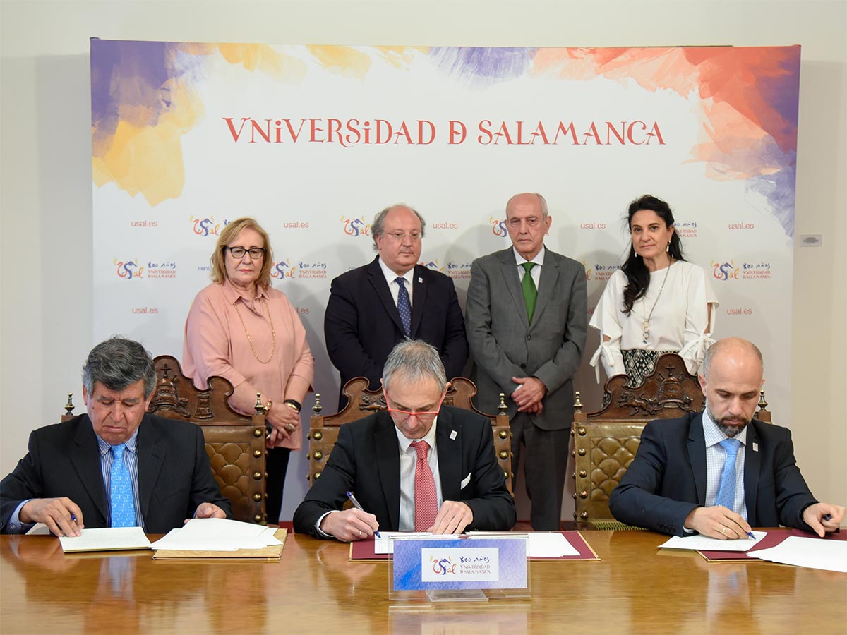 Durante el acto de la firma han estado presentes Enrique Cabero, vicerrector de Política Académica y Participación Social, como responsable del proyecto; Pedro Díaz, presidente de la Comisión Económica del Consejo Social de la Universidad de Salamanca; Pilar Jiménez Tello, vicesecretaria general; y Mili Pizarro, directora del SIPPE.