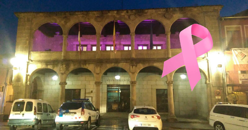 La fachada principal del Ayuntamiento de Béjar está iluminada de color rosa, desde la noche del martes 18 de octubre hasta el domingo 23, con motivo del Día Mundial Contra el Cáncer de Mama.
