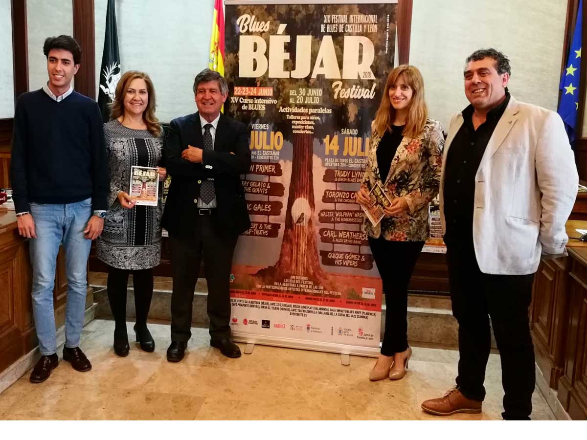 El alcalde de Béjar, Alejo Riñones; y la directora general de Políticas Culturales de Castilla y León, Mar Sancho, presentaron la XIX edición del Festival Internacional de Blues de Castilla y León que se celebrará los días 13 y 14 de julio en la Plaza de Toros de Béjar