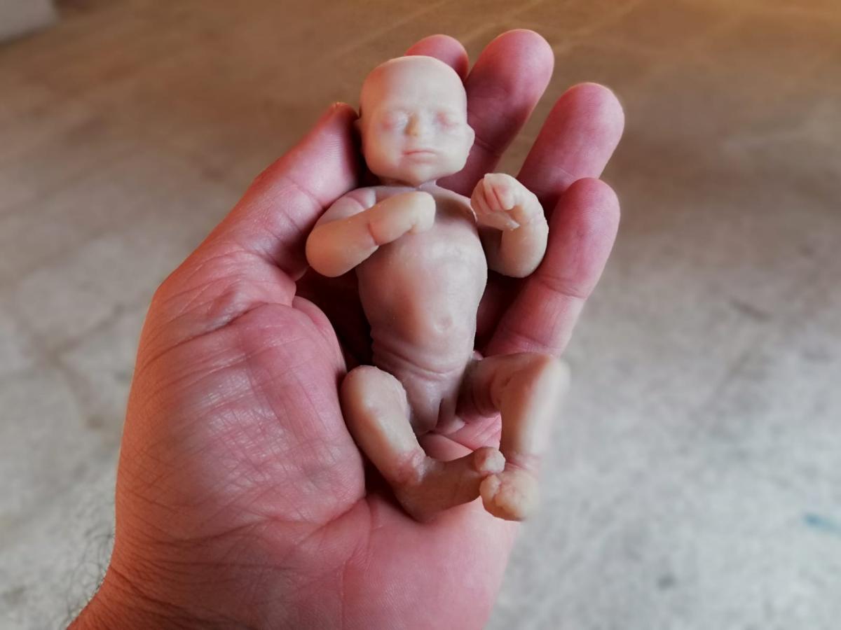 La muestra que permanecerá abierta hasta el próximo día 7 en el ábside de San Gil nos enseña el proceso en una primera parte los componentes inertes, piezas, miembros separados de lo que serán muñecos, que resultan inquietantes por su gran parecido con los bebés reales.