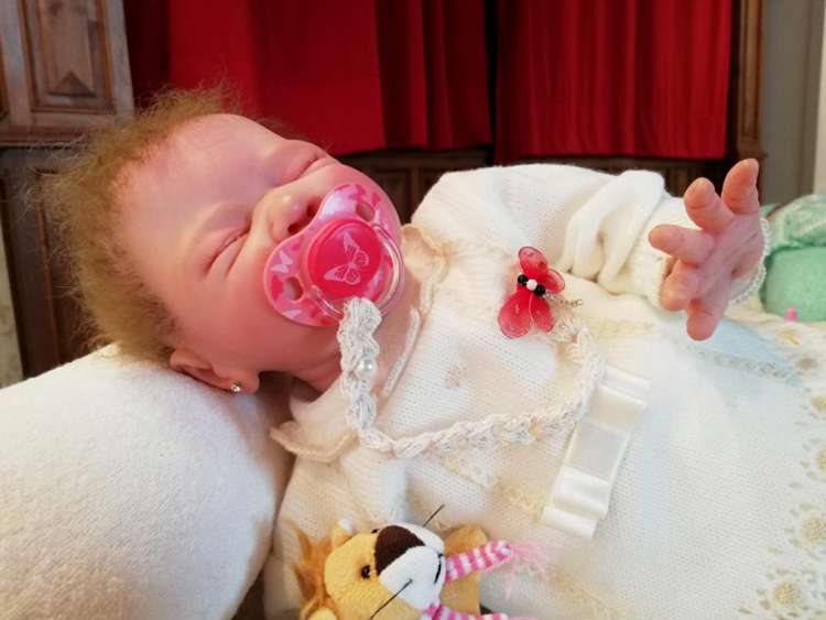 La muestra se compone, por un lado de los maniquíes, que no son otra cosa que bebés “hiperreales” y por otra el trabajo de ganchillo de la autora. Es precisamente en su gran parecido con los bebés reales, donde redunda la genialidad de la muestra.