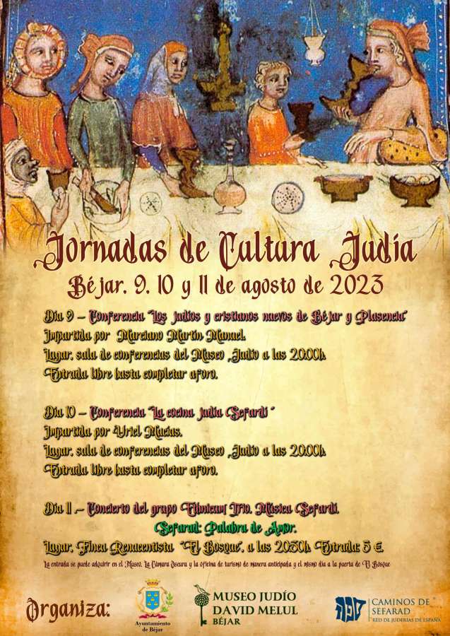 El miércoles, 9 de agosto, el Museo David Melul será el escenario de la conferencia titulada "Los judíos y cristianos nuevos de Béjar y Plasencia", a cargo del reconocido historiador Marciano Martín. La conferencia, que comenzará a las 20:00 horas, ofrecerá una fascinante visión de la vida y la influencia de la comunidad judía en estas dos ciudades históricas. La entrada será gratuita hasta completar el aforo.