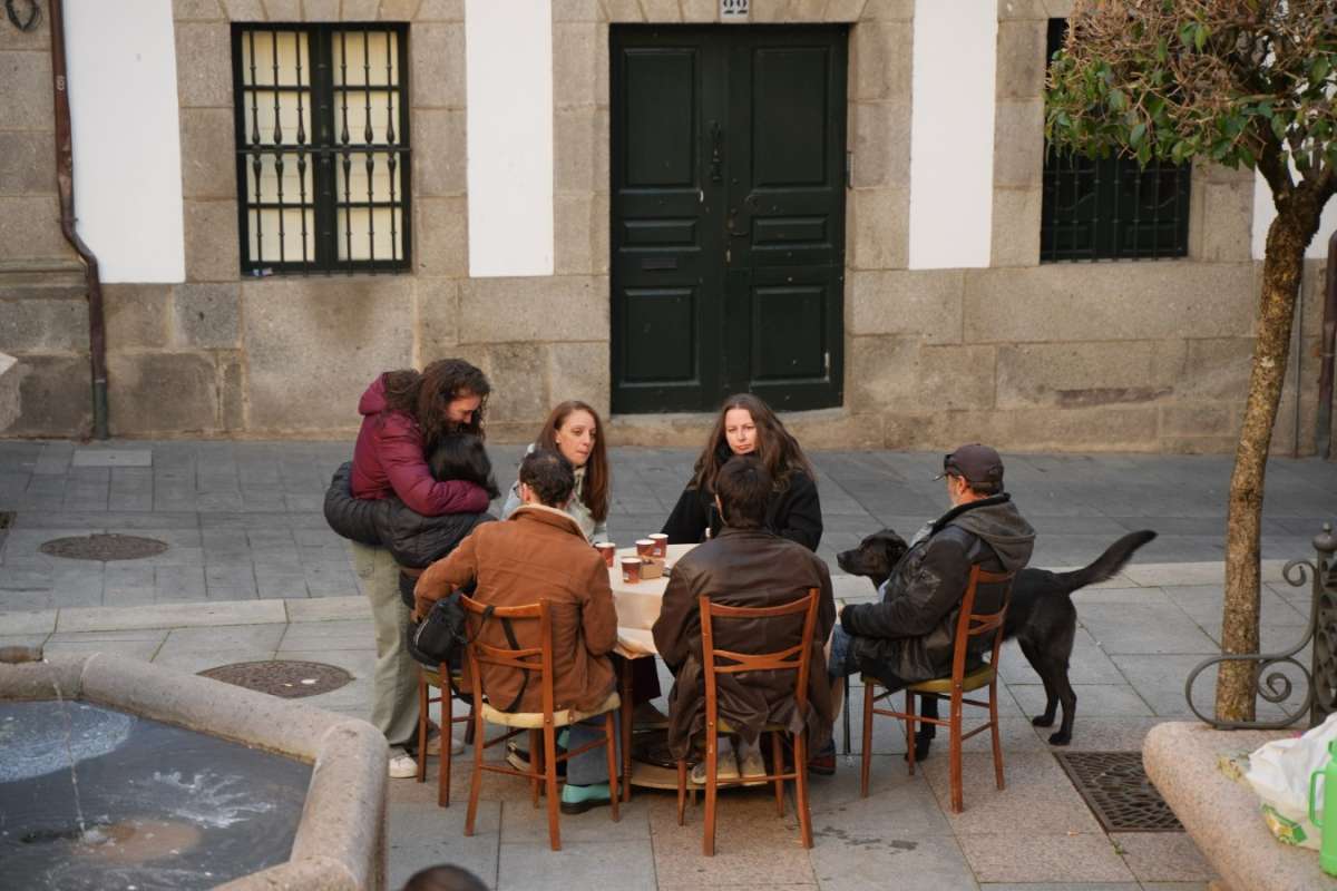 De cuatro a ocho de la tarde, cuatro mesas camillas con braseros de cisco y dieciséis sillas se dispusieron para recibir a vecinos y visitantes que, entre tazas de chocolate, café e infusiones, compartieron recuerdos y debatieron sobre las posibilidades de dinamizar Béjar a través del arte. Este acto marcó el inicio del Trabajo de Fin de Grado de Hoya, quien, como hijo de bejaranos emigrados, abordó la iniciativa desde su propia experiencia de "hijo ausente" en el contexto de la España Vaciada.