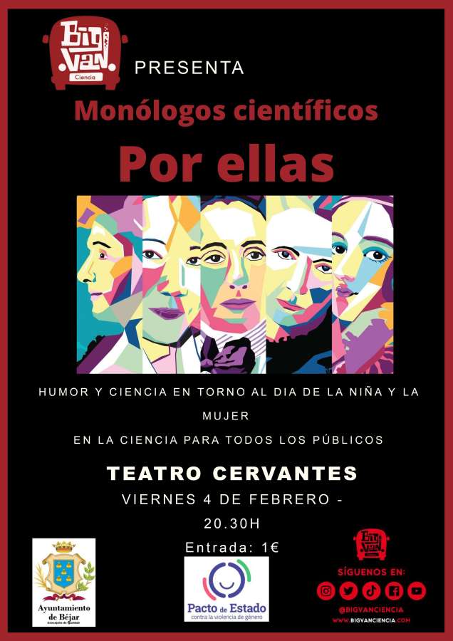 ‘Big Van’ actuará el viernes, 4 de febrero, en el Teatro Cervantes, a las 20.30h, con un monólogo científico para todos los públicos. A través del humor pondrán nombre y voz a mujeres que han revolucionado el mundo de la ciencia con sus descubrimientos. ¿Podemos cambiar nuestro ADN a voluntad? ¿Qué olvidó Darwin en su teoría de la evolución? ¿Cómo es que la vacuna de la Covid ha llegado tan rápido? ¿De qué está relleno el Universo? Son algunas preguntas que salen del laboratorio y donde las científicas han tenido mucho que decir para darles respuesta. Con el monólogo de ‘Big Van’ las descubriremos de forma divertida.