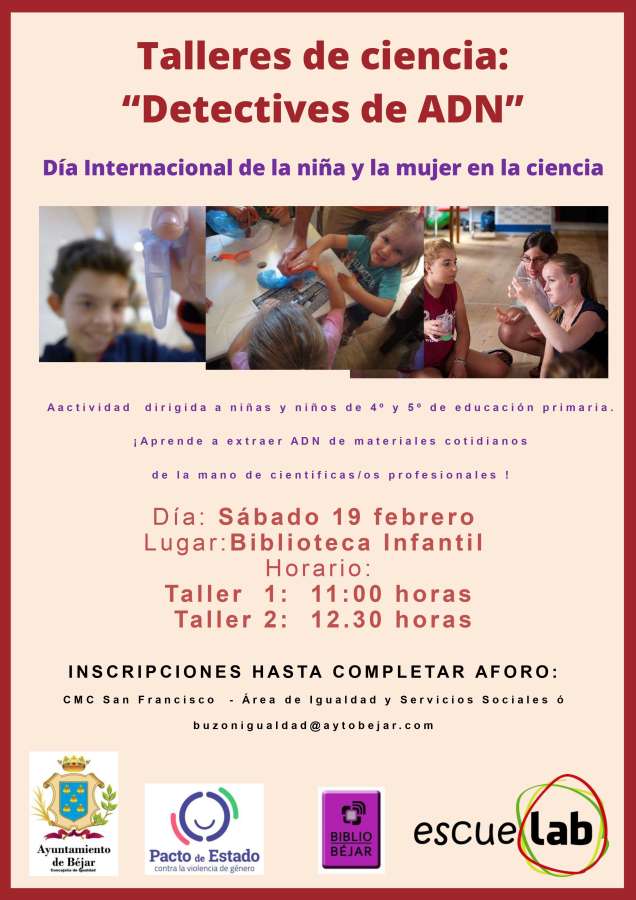El 11 de febrero de cada año, se celebra el Día Internacional de la Mujer y la Niña en la Ciencia proclamado por la ONU en el año 2015, para lograr una mayor participación e inclusión de las mujeres y las niñas en el mundo de la ciencia y la tecnología. Con este objetivo, a lo largo del mes de febrero, desde la concejalía de Igualdad del Ayuntamiento de Béjar se van a llevar a cabo varias actividades de sensibilización dirigidas a diferentes colectivos de población.
