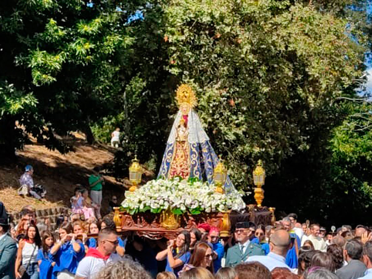 Hoy, Béjar vive el día grande de sus fiestas patronales en honor a la Virgen del Castañar. La jornada arrancó a las 11:30 h con la Santa Misa en el Santuario de Nuestra Señora del Castañar, seguida de una multitudinaria procesión en la que cientos de bejaranos y visitantes acompañaron la imagen de la Virgen durante su recorrido hasta el mirador. Con un ambiente festivo y una temperatura agradable, la participación fue masiva, mostrando una vez más la profunda devoción de la localidad hacia su patrona.