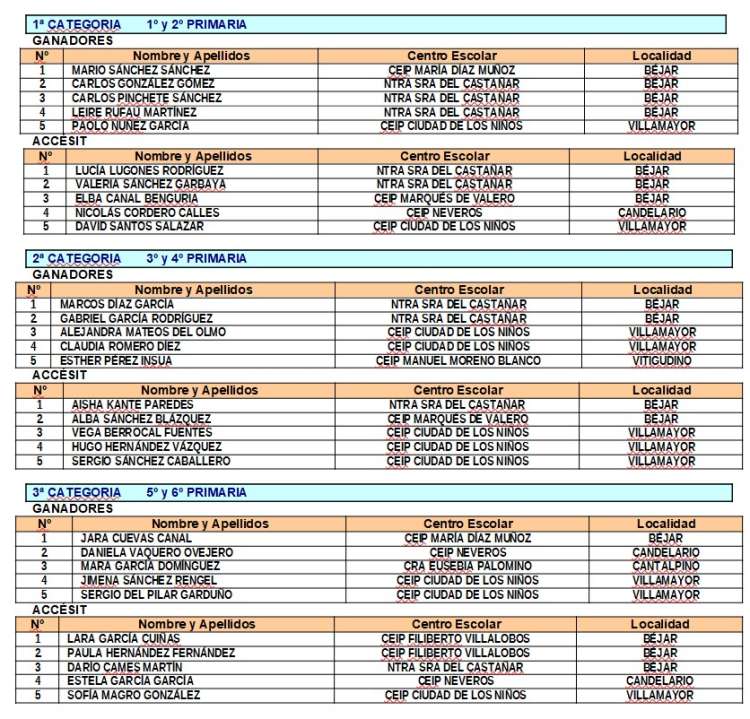| 3 | ELBA CANAL BENGURIA | CEIP MARQUÉS DE VALERO | BÉJAR |