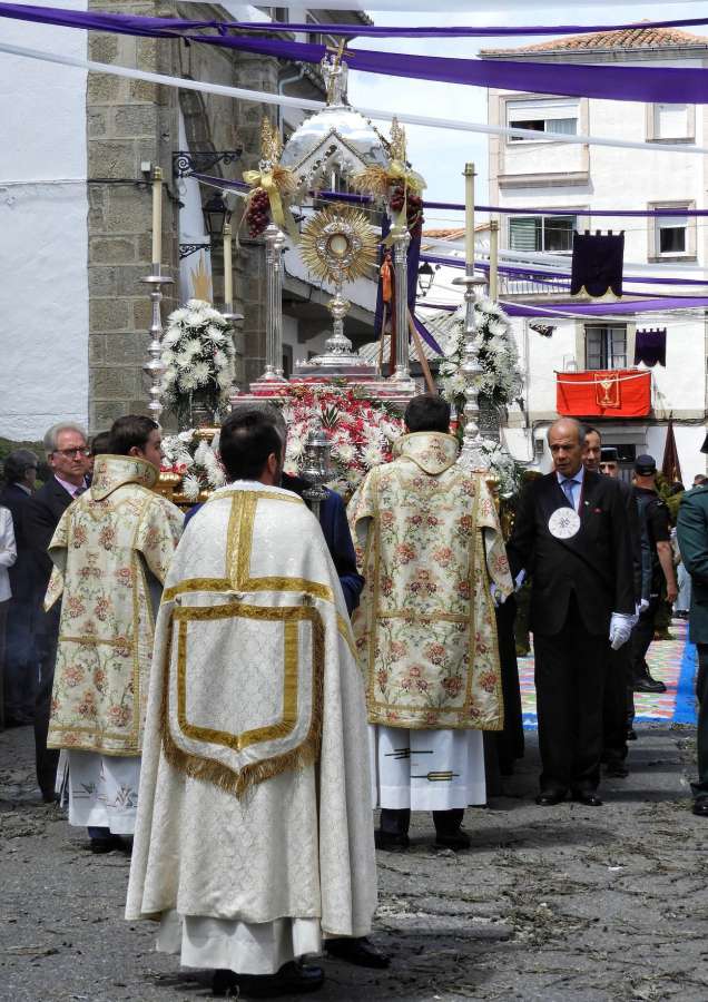 El esfuerzo de de decenas de personas, trabajadores municipales y voluntarios de las organizaciones civiles y religiosas, hizo posible tener todo a punto para celebrar la Fiesta e Interés Turístico Internacional del Corpus Christi en Béjar. Hasta el sábado de madrugada se prolongaron los trabajos para terminar de construir las coloridas alfombras de sal con las que se engalanan algunas zonas y calles de Béjar en los últimos años. Tradicionalmente, en la procesión se puede ver, sobre las alfombras de tomillo, la reliquia del Santísimo acompañada de todos los niños que han tomado la comunión en la ciudad y una representación de las banderas o insignias de las distintas cofradías.