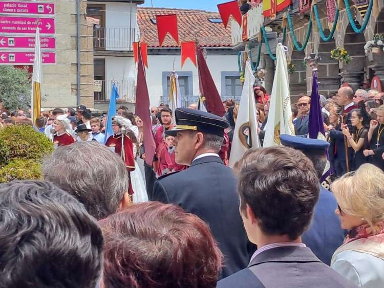 La tradición establece que el regidor era antes el que rendía el estandarte ante el Santísimo. Ahora en la llegada a la Plaza Mayor, los distintos representantes de cada una de las cofradías rinden sus banderas ante el Santísimo. Cuenta la tradición más reciente que antiguas discrepancias entre la Iglesia y los representantes civiles impedían la asistencia de estos últimos a misa, encontrándose las dos comitivas a medio camino, algo que en la actualidad ha dejado de hacerse.