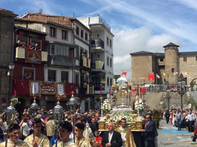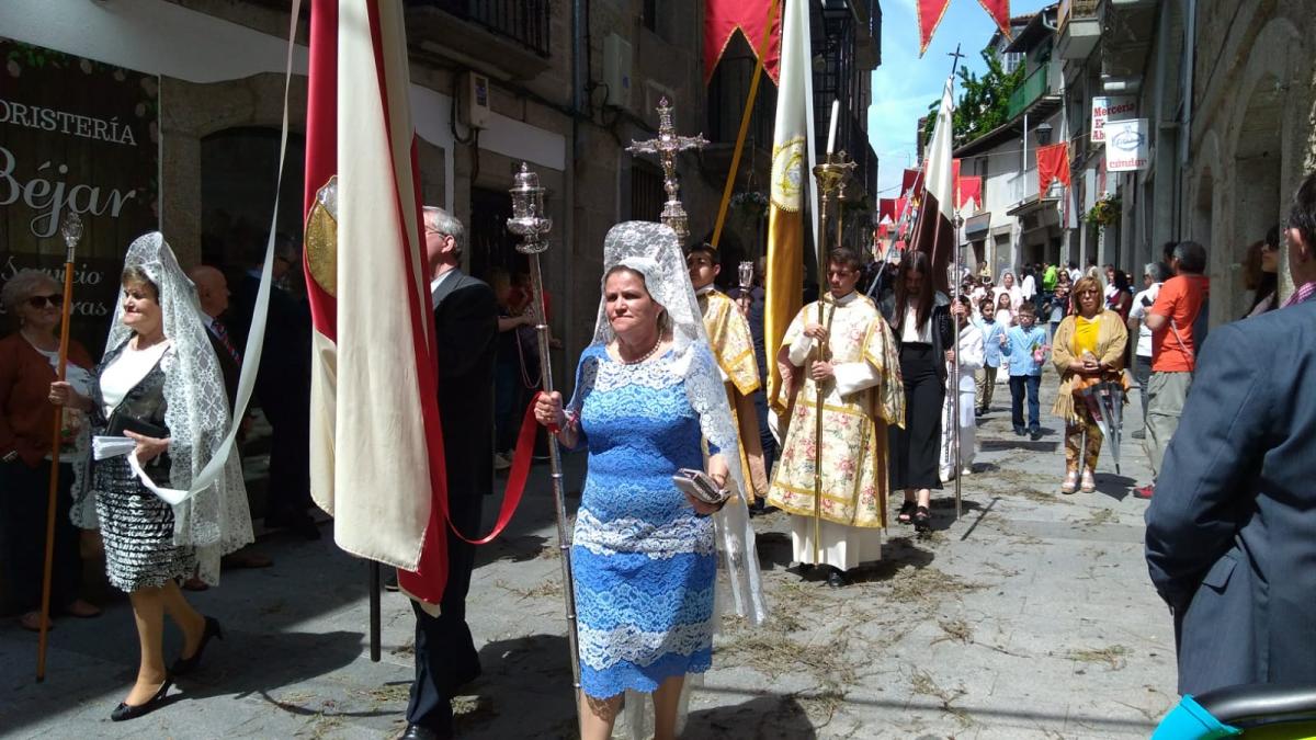 Ya el domingo, llegó el punto álgido de la celebración con la procesión del Corpus Christi, la más solemne de todas las procesiones que se celebran en Béjar, junto con la de la Virgen del Castañar. La jornada, se inició, a primera hora de la mañana, con la tradicional vestimenta de los Hombres de Musgo en el convento de San Francisco. Pasadas las 11 de la mañana partía la procesión de la iglesia de Santa María para recorrer las calles de la ciudad. Entre alfombras de sal, altares, romero, tomillo y pétalos de rosa, pudimos ver desfilar a los Hombres de Musgo junto a los niños de comunión, la comitiva municipal y al Santísimo.