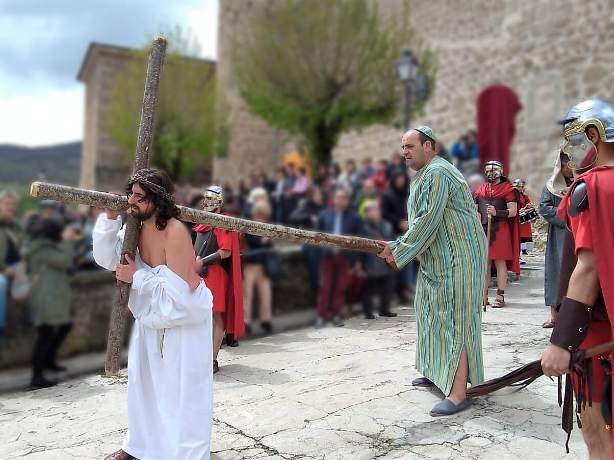 La representación finalizó con la representación del Viacrucis desde el Palacio Ducal al Calvario, crucifixión, descendimiento y sepulcro, escenificado en el exterior del patio del Palacio Ducal.