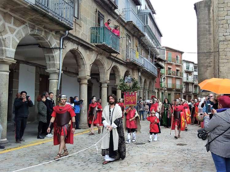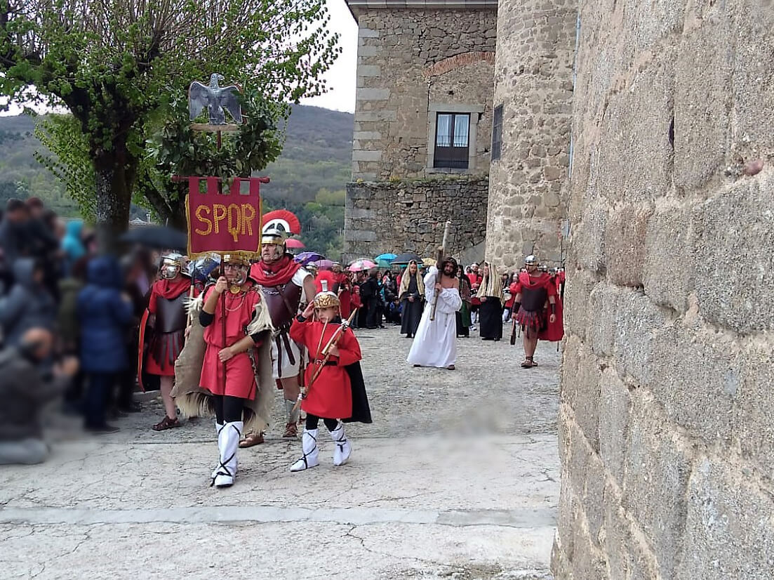 A pesar de la amenaza de lluvia, que hizo aparición en algunos momentos de forma débil, se pudo llevar a cabo la escenificación de "La Sentencia" con la presencia de numeroso público. La representación, organizada por la Hermandad de Jesús el Nazareno en colaboración con el Ayuntamiento de Béjar y el Colectivo Teatro Telar, ha contado con la participación activa de más de 200 personas.