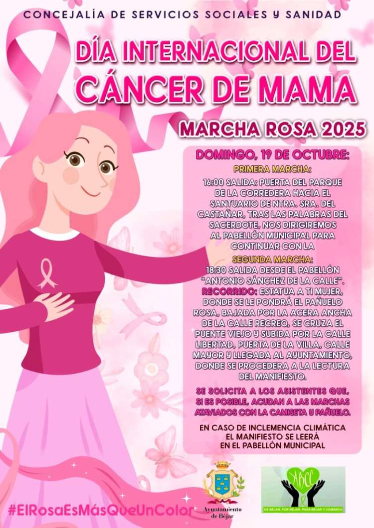 La Marcha Rosa 2025 se celebrará el domingo 19 de octubre con dos recorridos solidarios en Béjar para conmemorar el Día Internacional del Cáncer de Mama.