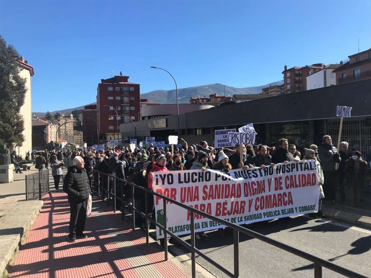Las bejaranos y comarcanos salieron masivamente a la calle, convocados por la plataforma en defensa de la sanidad pública para demandar mejoras en la sanidad y denunciar la dejadez y desidia de la administración que se está saldando con el desmantelamiento paulatino del sistema de salud en la zona.