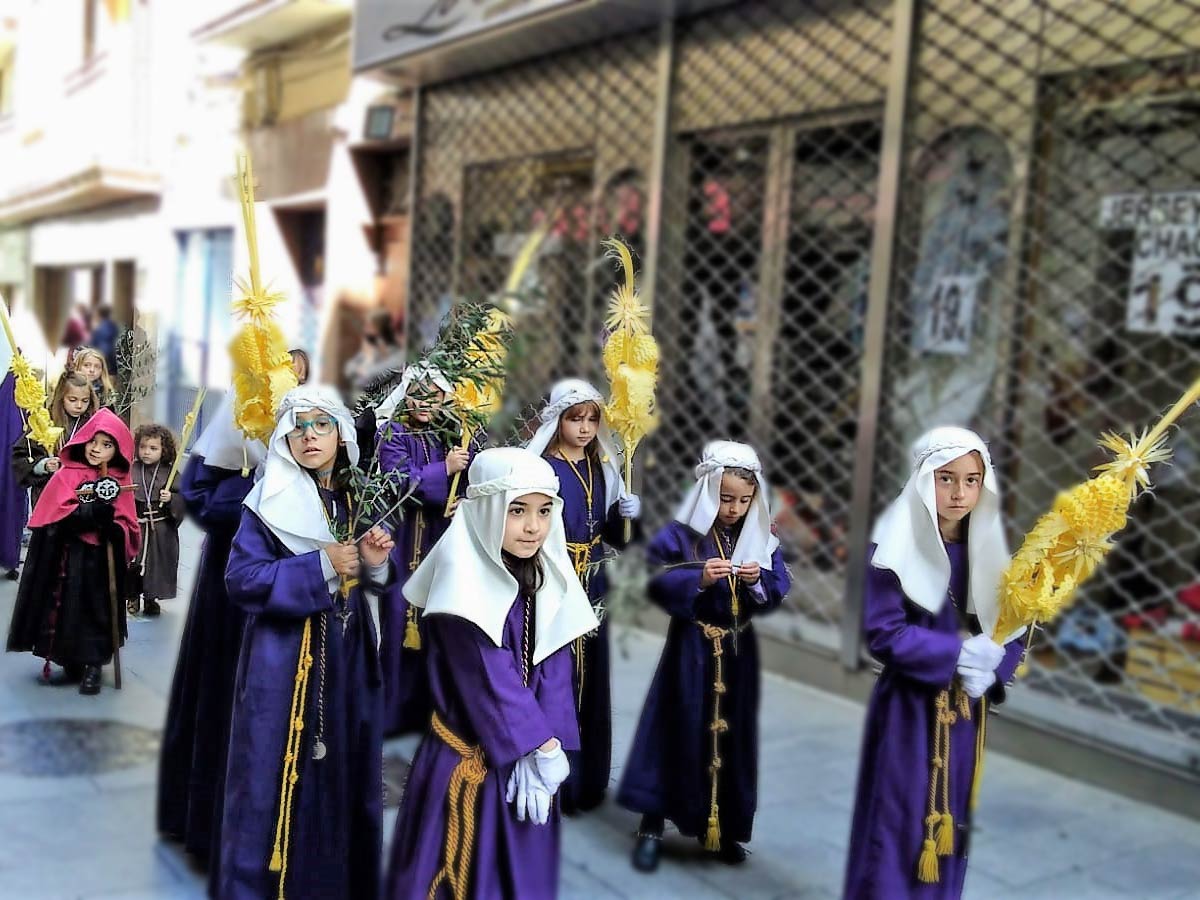 El domingo de Ramos es un día especialmente dedicado a los niños, donde se reparten las tradicionales palmas a los cofrades y ramos de olivo a las personas que quieren llevárselos a su domicilio.