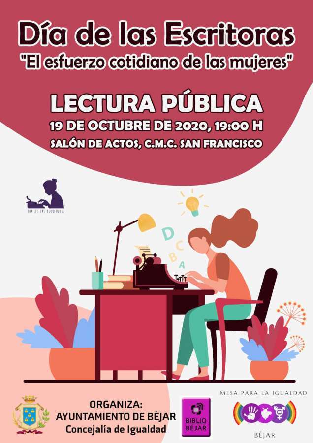 El próximo lunes, 19 de octubre, la Biblioteca Nacional de España organiza el "Día de las Escritoras" y la Concejalía de Igualdad y Servicios Sociales y la Biblioteca Municipal se adhieren a esta iniciativa que visibiliza la creación literaria femenina. Este año 2020 su comisaria, la también escritora Elvira Lindo, ha elegido el lema "El esfuerzo cotidiano de las mujeres". La fecha elegida es el lunes más cercano a la festividad de Teresa de Jesús, que se conmemora el 15 de octubre.