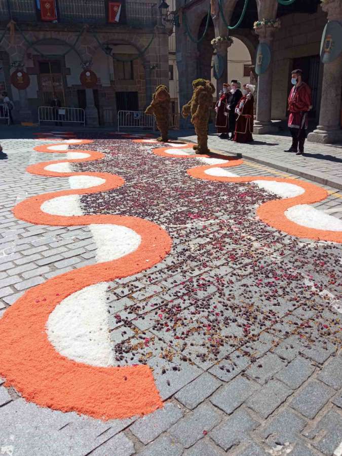 Fue un acto simbólico consistente en la decoración de la Plaza Mayor y la fachada del Ayuntamiento, la elaboración de una alfombra delante del Ayuntamiento y la vestida de dos Hombres de Musgo, dos abanderados, el síndico y los maceros, como símbolo de la representación de la parte civil de la procesión del Corpus Christi.