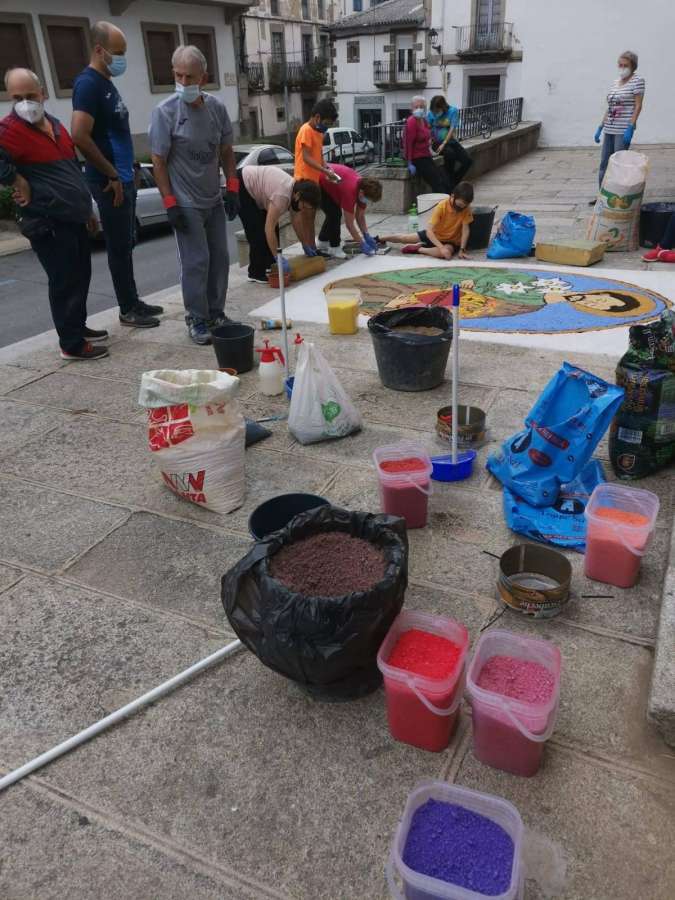 La imposibilidad de organizar la multitudinaria procesión religiosa y civil del Corpus Christi y de los Hombres de Musgo derivó en la alternativa propuesta desde el Ayuntamiento, por medio de la cual se engalanó la Plaza Mayor, el propio Ayuntamiento y la escalinata de la iglesia de El Salvador. Estos espacios constituyen el escenario habitual de los actos más importantes del Corpus bejarano.